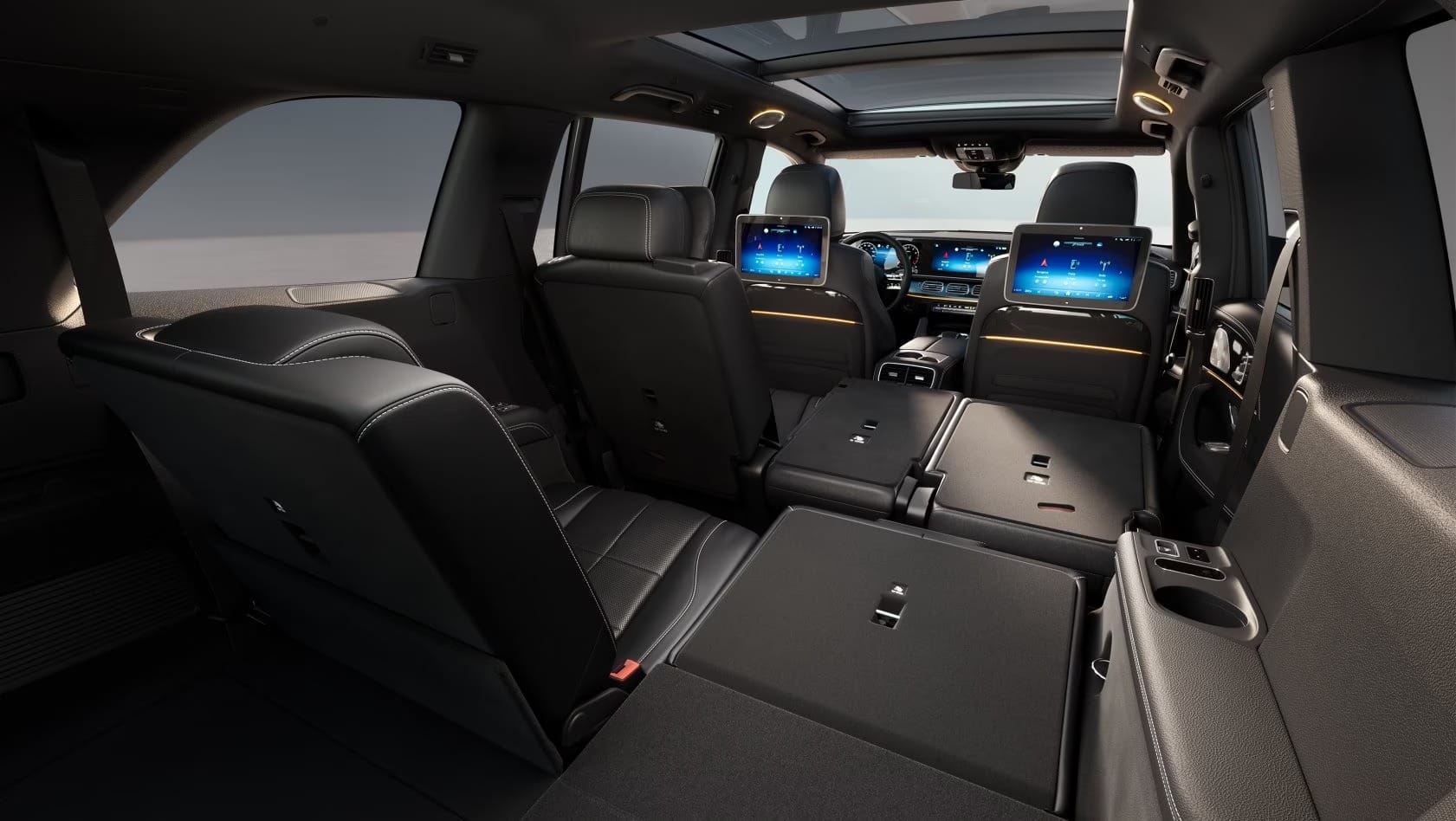 У салоні GLS найкраще відчувається головна ідея моделі: це не “спортивний” флагман, а великий простір для тривалого комфортного пересування. Офіційно в нього 7 місць, а третій ряд не є декоративним: Mercedes прямо описує його як повноцінний ряд для двох пасажирів із системою EASY-ENTRY для доступу через другий ряд. У поєднанні з можливістю складання сидінь це дає машині рідкісну універсальність: GLS може бути і сімейним трансфером, і дорогим дорожнім крейсером, і великим автомобілем для поїздок із багажем. Навіть якщо з усіма сімома місцями об’єм багажника становить лише 355 л, американські дані по салону показують діапазон вантажного простору до 84,7 куб. фута, тобто майже 2400 л у перерахунку. Це не магія, а проста математика великого кузова. І саме тому в практичності GLS дуже складно дорікнути чимось серйозним.