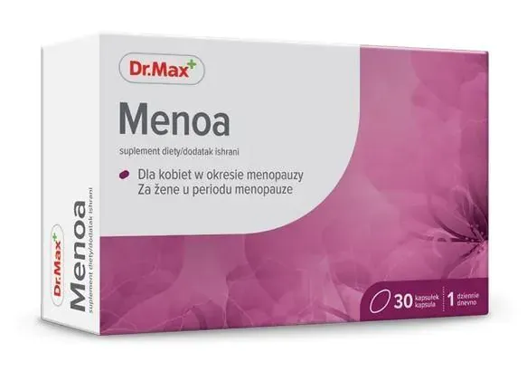 Dr.Max Menoa - харчова добавка, призначена для жінок у період менопаузи, сприяє зменшенню неприємних симптомів, які супроводжують період менопаузи: припливи, зайва пітливість, дратівливість, неспокійний сон.