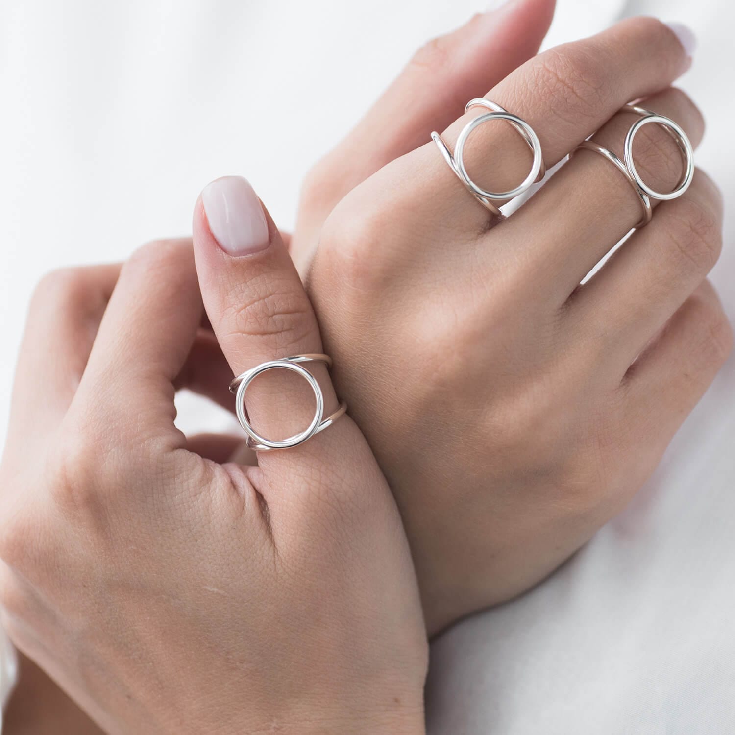 Каблучки — одна з найсильніших категорій бренду. Це класичні золоті каблучки, обручки, каблучки з камінням, символічні моделі та колекції ручної роботи. Особливої уваги заслуговує каблучка «Моя Україна», яка стала справжнім хітом і символом любові до Батьківщини. Саме її співробітники ONIKS подарували Анджеліні Джолі під час її візиту до Львова — історія, яка стала легендарною для бренду і принесла йому світову впізнаваність.