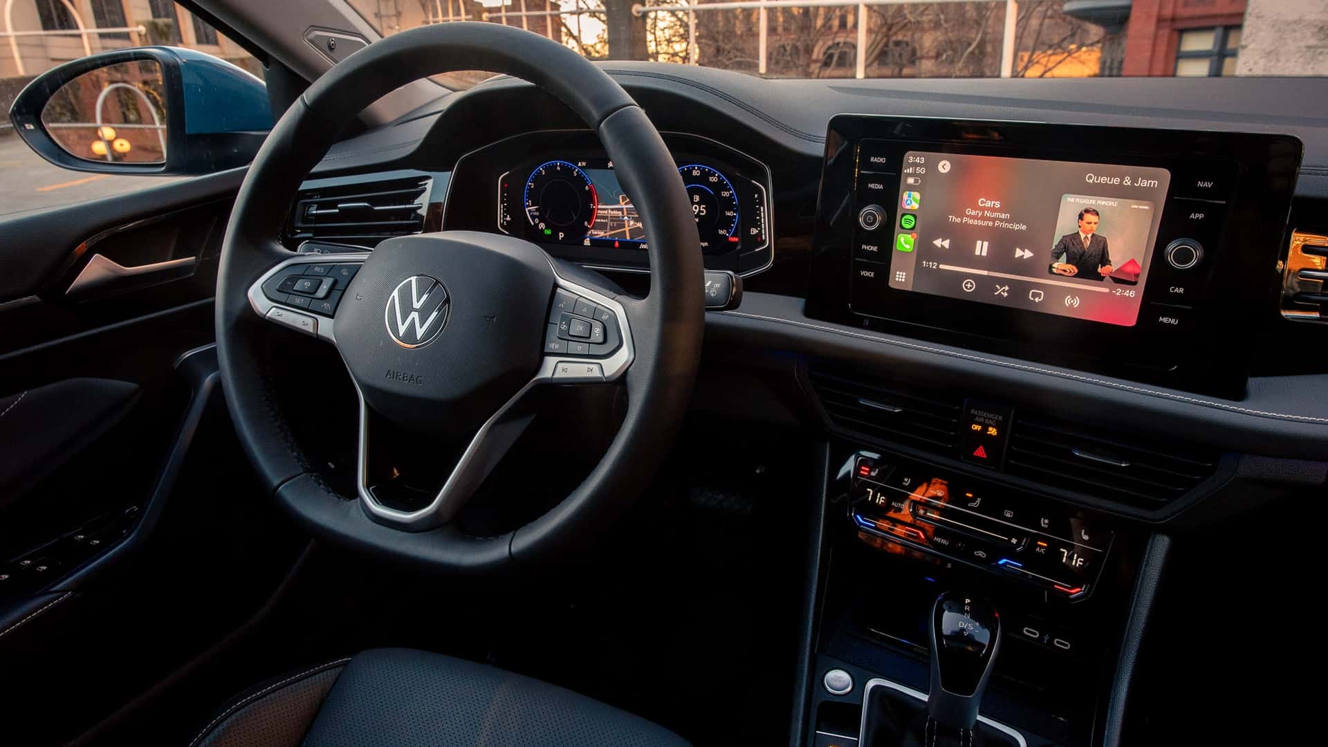 Салон Jetta — стриманий, функціональний, без зайвого пафосу. Матеріали — пристойні для свого класу, але не преміальні.